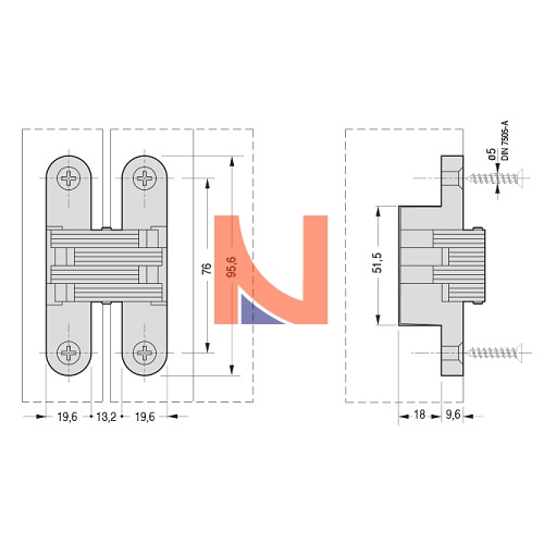 Cerniera invisibile per porte in legno e alluminio.