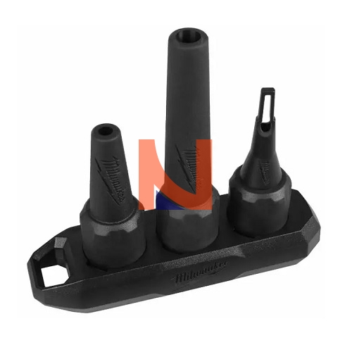 Il soffiatore a pistola Milwaukee M18 BLHSB-0 è fornito con 3 ugelli (6, 8 mm e per gonfiare) con supporto magnetico.